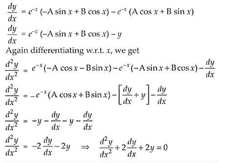Given equation, y = e–x (A cos x + B sin x)
