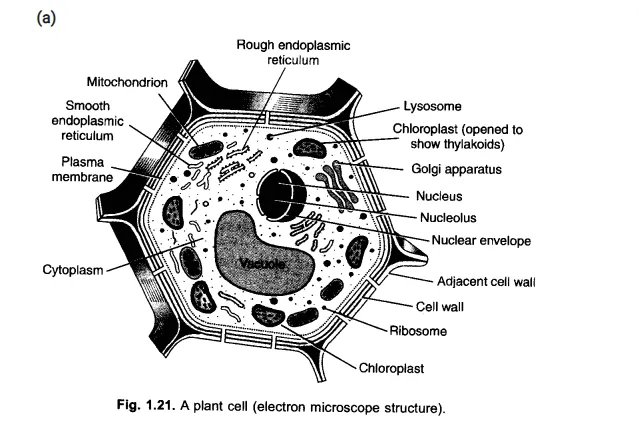 Illustrate only a plant cell as seen under electron microscope. How is it different from animal cell?
