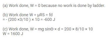 In a children's park, there is a slide which has a total length of $10 \mathrm{~m}$ and a height of $8.0 \mathrm{~m}$ (figure 8-E3). Vertical ladder are provided to reach the top. A boy weighing $200 \mathrm{~N}$ climbs up the ladder to the top of the slide and slides down to the ground. The average friction offered by the slide is three tenth of his weight. Find (a) the work done by the ladder on the boy as he goes up, (b) the work done by the slide on the boy as he comes down. Neglect any work done by forces inside the body of the boy.