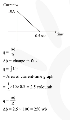 Question: In a coil of resistance $100 \Omega$, a current is induced by changing the magnetic flux through it as shown in the figure. The magnitude of change in flux through the coil is :-