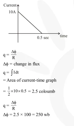 In a coil of resistance $100 \Omega$, a current is induced by changing the magnetic flux through it as shown in the figure. The magnitude of change in flux through the coil is :-
