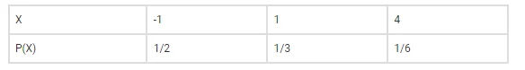 So, P(X = -1) = 1/6 + 1/6 + 1/6 = 3/6 = ½