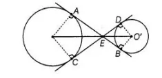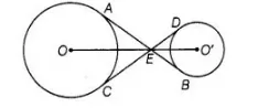 In a figure the common tangents, AB and CD to two circles with centres 0 and O’ intersect at E. Prove that the points 0, E and O’ are collinear.