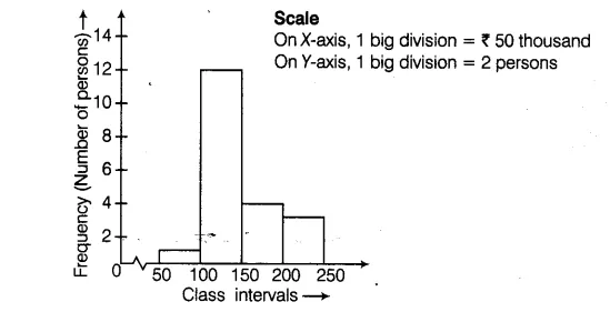 Draw a histogram of the frequency distribution, taking one of the class intervals as 50-100.