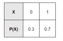 $\mathrm{P}(\mathrm{X}=1)=70 \%=\frac{70}{100}=0.7$