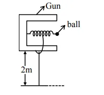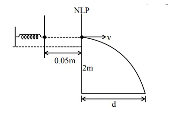In a spring gun having spring constant $100 \mathrm{~N} / \mathrm{m}$ a small ball 'B' of mass $100 \mathrm{~g}$ is put in its barrel (as shown in figure) by compressing the spring through $0.05 \mathrm{~m}$. There should be a box placed at a distance 'd' on the ground so that the ball falls in it. If the ball leaves the gun horizontally at a height of $2 \mathrm{~m}$ above the ground. The value of $d$ is_______m.