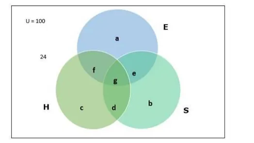 $E=a+e+f+g=$ Number of students learning English $26=18+8+f$