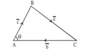 $\cos \theta=\frac{|\vec{b}|^{2}+|\vec{c}|^{2}-|\vec{a}|^{2}}{2|\vec{b}||\vec{c}|}=\frac{17}{28}$