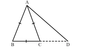 In ∆ABC, AB = AC. Side BC is produced to D. Prove that