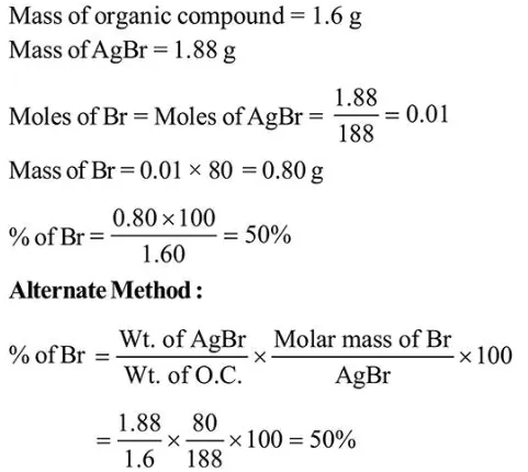 In an estimation of bromine by Carius method, $1.6 \mathrm{~g}$ of an organic compound gave $1.88 \mathrm{~g}$ of $\mathrm{AgBr}$. The mass percentage of bromine in the compound is ______________ .(Atomic mass, $\mathrm{Ag}=108, \mathrm{Br}=80 \mathrm{~g} \mathrm{~mol}^{-1}$ )