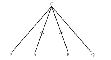 $\angle \mathrm{CAB}=\angle \mathrm{CBA}$ Equal sides have equal angles opposite to them $\Rightarrow 180^{\circ}-\angle \mathrm{CAP}=180^{\circ}-\angle \mathrm{CBQ} \Rightarrow \angle \mathrm{CAP}=\angle \mathrm{CBQ}$