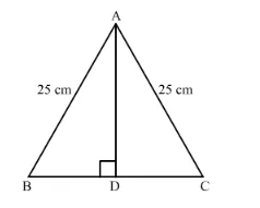 In an isosceles triangle ABC, AB = AC = 25 cm, BC = 14 cm, Calculate the altitude from A on BC.