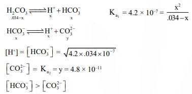 In aqueous solution the ionization constants for carbonic acid are $\mathrm{K}_{1}=4.2 \times 10^{-7}$ and $\mathrm{K}_{2}=4.8$ $\times 10^{-11}$ Select the correct statement for a saturated $0.034 \mathrm{M}$ solution of the carbonic acid :-