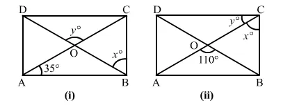 In each of the figures given below, ABD is a rectangle. Find the values of x and y in each case.