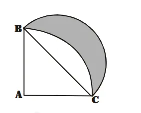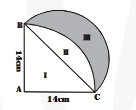 - Area of $\triangle \mathrm{ABC}=\left\{\frac{1}{4} \pi \times(14)^{2}-\frac{1}{2} \times 14 \times 14\right\} \mathrm{cm}^{2}$