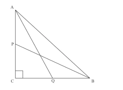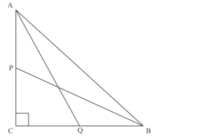 In Figure 6, P and Q are the midpoints of the sides CA and CB respectively of ∆ABC right angled at C. Prove that 4(AQ2 + BP2) = 5 AB2.