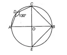 We have, ∠ADC = 130° and chord BC – chord BE. Suppose, we consider the points A, B, C and D form a cyclic quadrilateral.