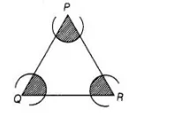 $=\frac{\angle P}{360^{\circ}} \times \pi \times(14)^{2}+\frac{\angle \theta}{360^{\circ}} \times \pi \times(14)^{2}+\frac{\angle R}{360^{\circ}} \times \pi \times(14)^{2}$