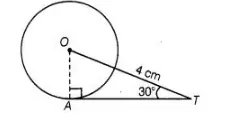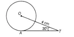 In figure, $\mathrm{AT}$ is a tangent to the circle with centre 0 such that $\mathrm{OT}=4 \mathrm{~cm}$ and $\angle \mathrm{OTA}=30^{\circ}$. Then, $\mathrm{AT}$ is equal to