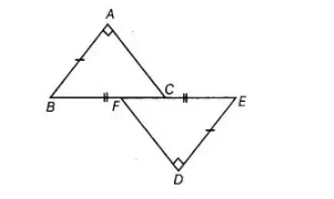 Given in figure, $B A \perp A C, D E \perp D F$ such that $B A=D E$ and $B F=E C$.