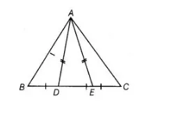 Given $D$ and $E$ are the points on side $B C$ of a $\triangle A B C$ such that $B D=C E$ and $A D=A E$.