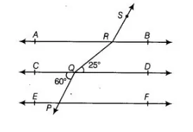 ∠PQC = ∠BRS = 60° [alternate exterior angles and ∠PQC = 60° (given)] and ∠DQR = ∠QRA = 25° [alternate interior angles]
