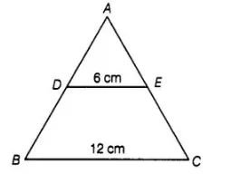 Given, $D E \| B C, D E=6 \mathrm{~cm}$ and $B C=12 \mathrm{~cm}$ In $\triangle A B C$ and $\triangle A D E$,