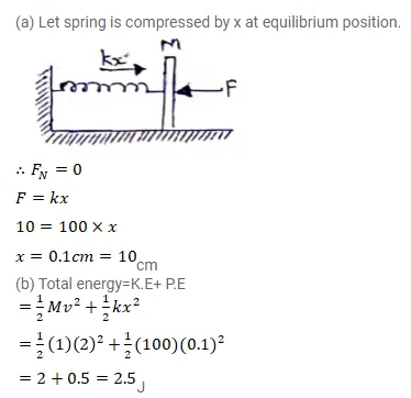 (b) A sharp blow by some external agent imparts a speed of $2 \mathrm{~m} / \mathrm{s}$ to the block towards left. Find the sum of the potential energy of the spring and the kinetic energy of the block at this instant.