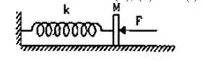 In figure $\mathrm{k}=100 \mathrm{~N} / \mathrm{m}, \mathrm{M}=1 \mathrm{~kg}$ and $\mathrm{F}=10 \mathrm{~N}$.