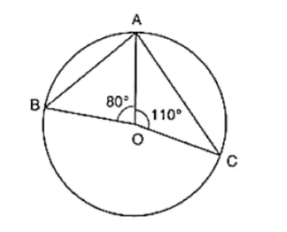 ⇒ ∠BOC = 360° − 80° − 110°