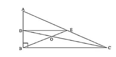 In figure, Triangle ABC is a right angled triangle at B. Given that AB = 9 cm, AC = 15 cm and D, E are the mid-points of the sides AB and AC respectively, calculate