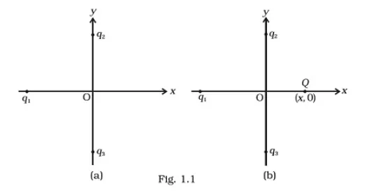 Now, if a positive charge Q is placed at (x, 0), then, the force on q1 shall increase. The direction will be along positive x axis.