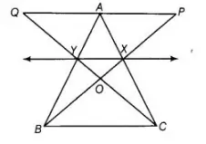We know that, triangles on the same base and between the same parallels are equal in area. Here, ΔBYC and ΔBXC lie on same base BC and