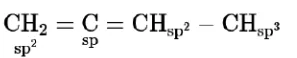 $\mathrm{sp}^{2}, \mathrm{sp}, \mathrm{sp}^{2}, \mathrm{sp}^{3}$