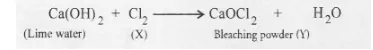 anode while hydrogen at cathode. Chlorine reacts with lime water containing slaked lime to form bleaching power (Y)