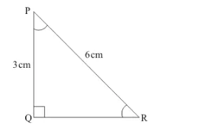 In $\triangle P Q R$, right-angled at $Q, P Q=3 \mathrm{~cm}$ and $P R=6 \mathrm{~cm}$. Determine $\angle P$ and $\angle R$.