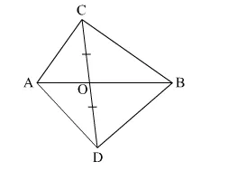 In the adjoining figure, ABC and ABD are two triangles on the same base AB. If line segment CD is bisected by AB at O, show that ar(ΔABC) = ar(ΔABD)