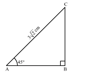 In the adjoining figure, $\triangle A B C$ is a right-angled at $B$ and $\angle A=45^{\circ}$. If $A C=3 \sqrt{2} \mathrm{~cm}$,