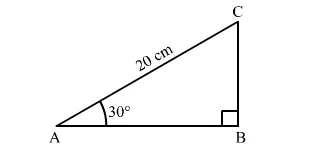 In the adjoining figure, $\triangle A B C$ is a right-angled triangle in which $\angle B=90^{\circ}, \angle A=30^{\circ}$ and $A C=20 \mathrm{~cm}$.