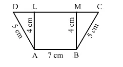 In the adjoining figure, ABCD is a trapezium in which AB || DC; AB = 7 cm; AD = BC = 5 cm and the distance between AB and DC is 4 cm. Find the length of DC and hence, find the area of trap. ABCD.