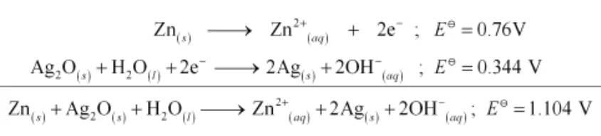Zn(s) + Ag2O(s) + H2O(l) → Zn2+(aq) + 2Ag(s) + 2OH−(aq)