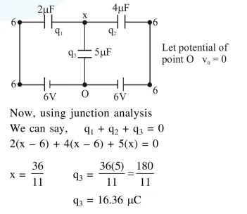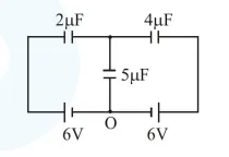 In the circuit shown, charge on the $5 \mu \mathrm{F}$ capacitor is :
