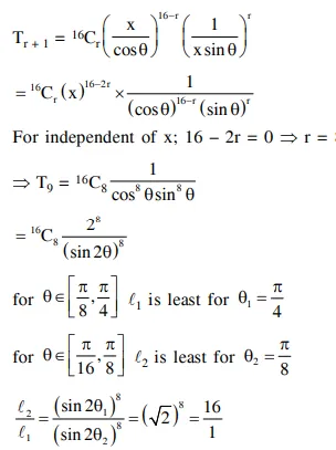 when $\frac{\pi}{8} \leq \theta \leq \frac{\pi}{4}$ and $\ell_{2}$ is the least value of the term independent of $x$ when $\frac{\pi}{16} \leq \theta \leq \frac{\pi}{8}$, then the ratio $\ell_{2}: \ell_{1}$ is equal to :