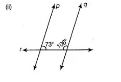 In Fig. (ii), the sum of two interior angles 73° + 106° = 179° ≠ 180°. Here, we see that the sum of two interior angles on same side of r is not equal