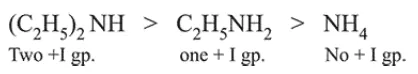 $\left(\mathrm{C}_{2} \mathrm{H}_{5}\right)_{2} \mathrm{NH}>\mathrm{C}_{2} \mathrm{H}_{5} \mathrm{NH}_{2}>\mathrm{NH}_{3}$