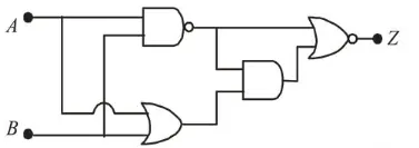 In the following digitial circuit, what will be the output at ' $Z$ ', when the input $(A, B)$ are $(1,0),(0,0),(1,1),(0,1)$ :