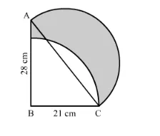 $\therefore$ Area of the shaded region $=\frac{\pi \times 17.5 \times 17.5}{2}+\frac{1}{2} \times 28 \times 21-\frac{\theta}{360} \times \pi \times 21 \times 21$