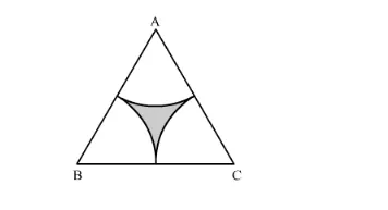 In the following figure, $A B C$ is an equilateral triangle of side $8 \mathrm{~cm} . A, B$ and $C$ are the centres of circular arcs of radius $4 \mathrm{~cm}$. Find the area of the shaded region correct upto 2 decimal places. (Take $\pi=3.142$ and $\sqrt{3}=1.732$ ).