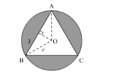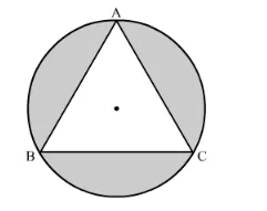 In the following figure, an equilateral triangle ABC of side 6 cm has been inscribed in a circle. Find the area of the shaded region. (Take π = 3.14).