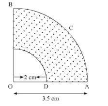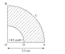 In the following figure, OACB is a quadrant of a circle with centre O and radius 3.5 cm. If OD = 2 cm, find the area of the